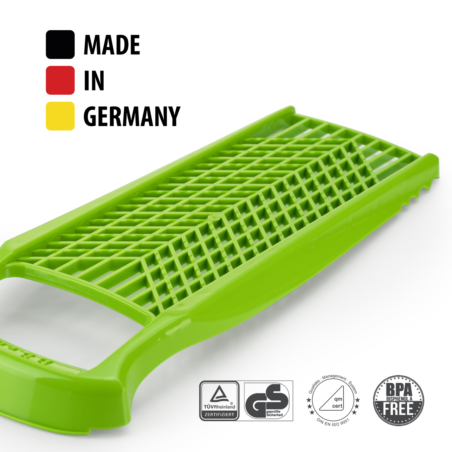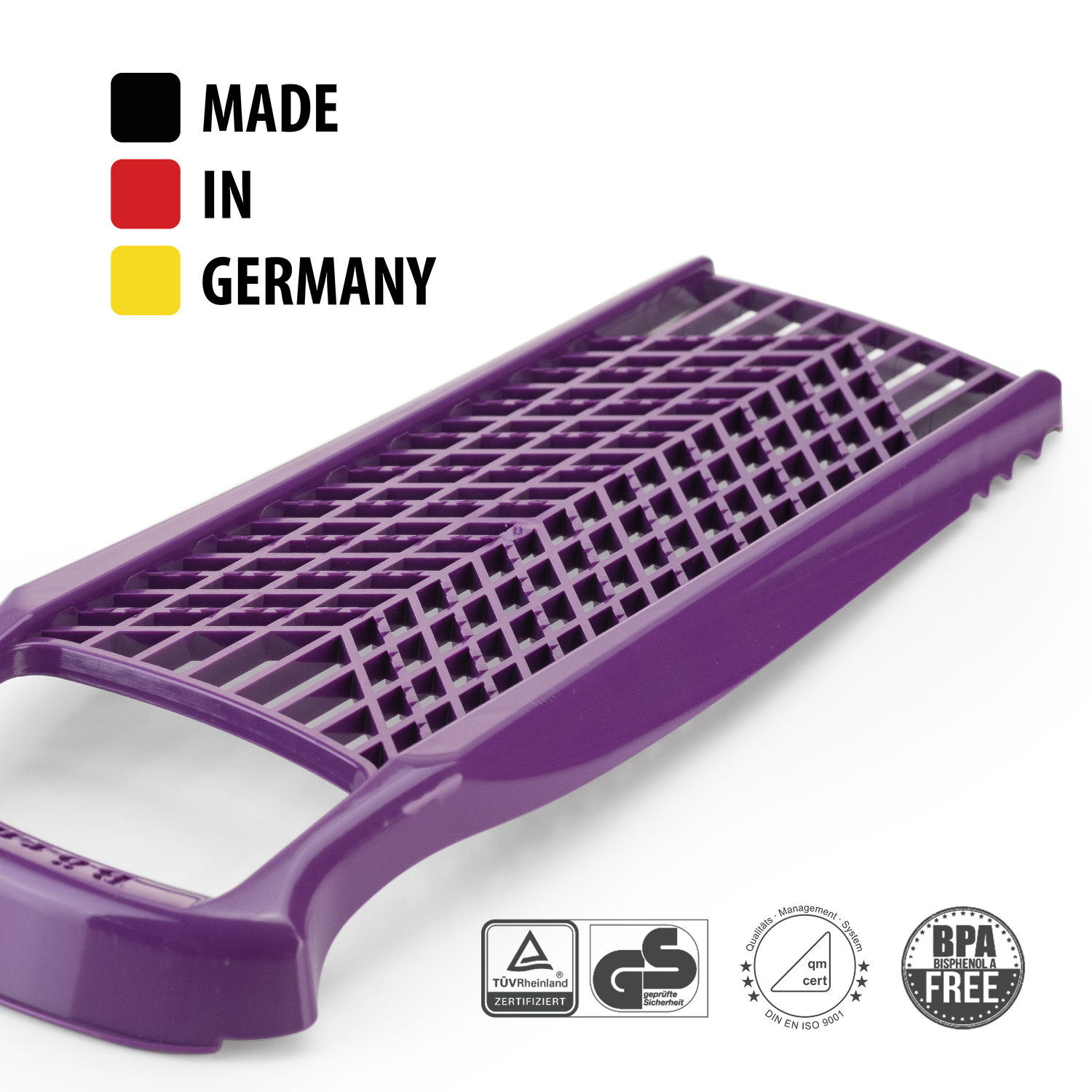 It is ideal for grating vegetables, cheese, chocolate, citrus fruit peelings, carrots, radish or apples and much more. A practical helper when it comes to preparing your meals. After use simply clean under running water. The food holder is not included and may be purchased separately.